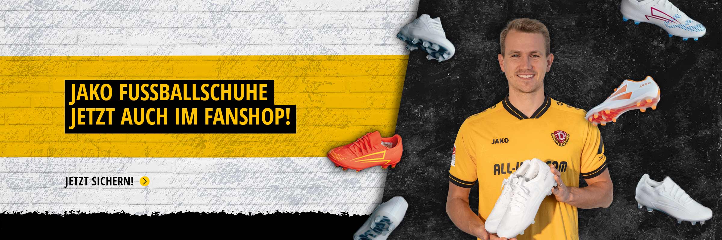 Dein Trikot, dein Style, dein Zeichen für Schwarz-Gelb. Stell dir im Trikotkonfigurator dein Wunschtrikot der Saison zusammen – ganz nach deinem Geschmack. Willst du das 2. Bundesliga Wappen stolz auf dem Ärmel tragen? Kein Problem. Ob Spielerdruck oder dein eigener Name auf dem Rücken, hier wird dein Trikot zur echten Dynamo-Flagge. Für den Spieltag, fürs Wohnzimmer und überall da draußen, wo Dynamo lebt. Zeig Verbundenheit, zeig Leidenschaft, zeig, dass du Teil der Sportgemeinschaft bist. Mach’s zu deinem Trikot!