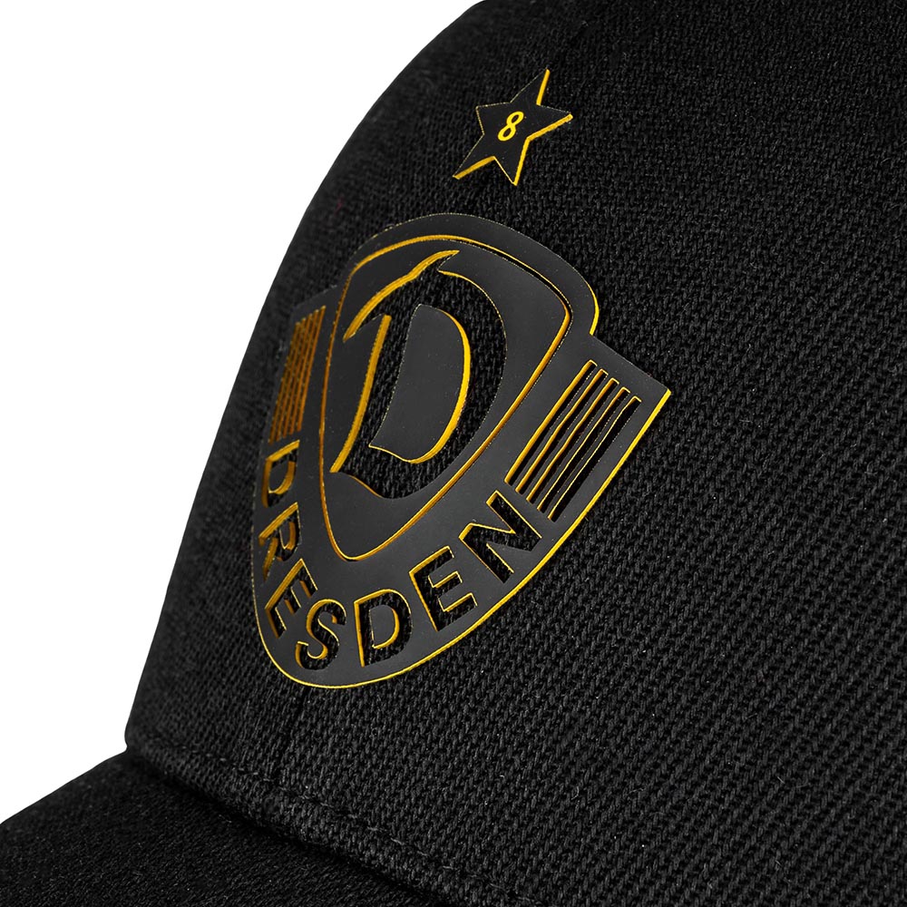 Dieses schwarze Basecap bringt alles mit, was eine echte Dynamo-Mütze braucht: Schwarzes Design mit klarer Kante, durchzogen von dem Wappen der SGD und dem Meisterstern, beides bleibt von vorn dezent und von der Seite in Gelb leuchtend.
