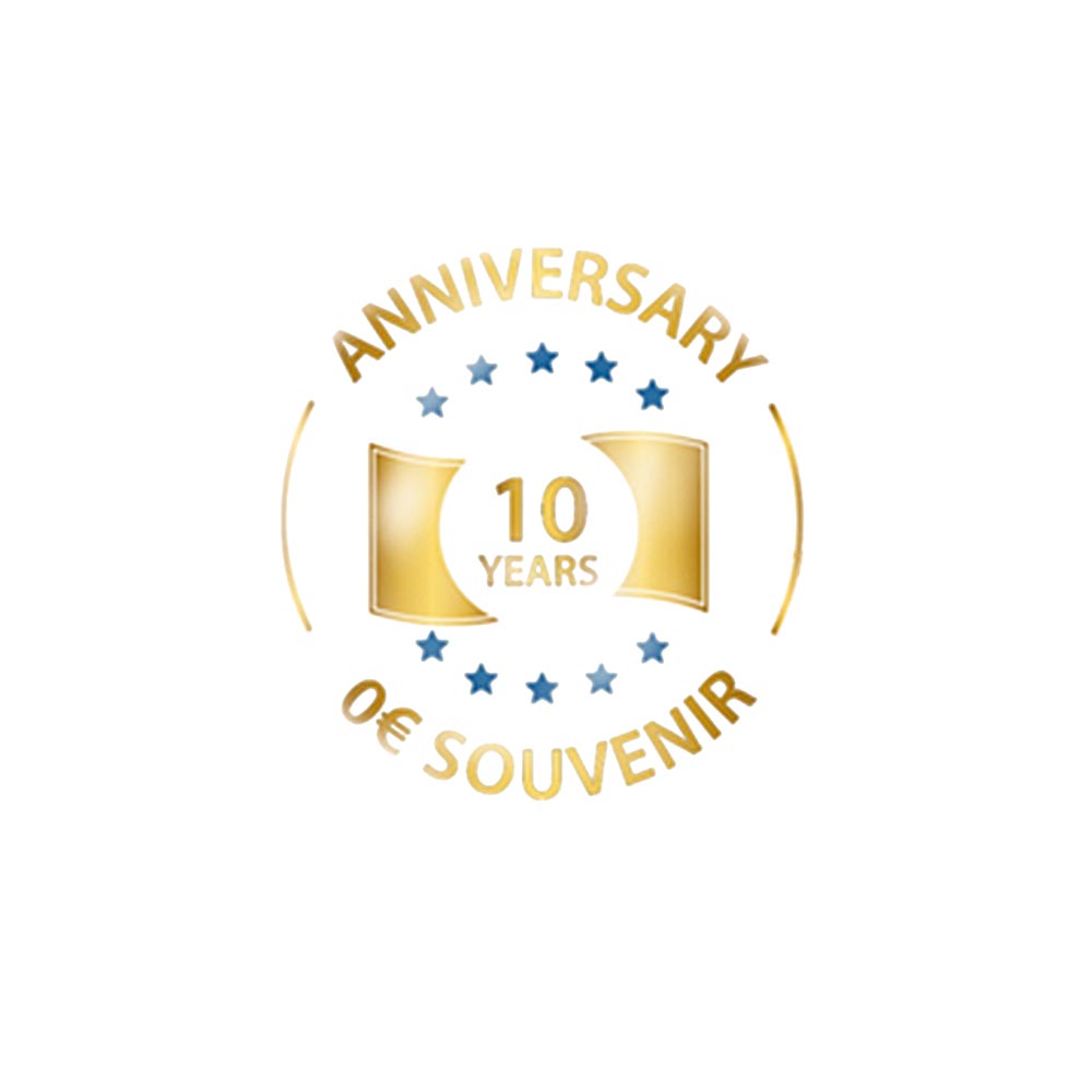 Anlässlich des 10. Jubiläums des beliebten 0 Euro Souvenirscheins, erscheint dieser, auf 1000 Stück limitierte 0-€ Schein in dynamischem Design mit passendem Umschlag.