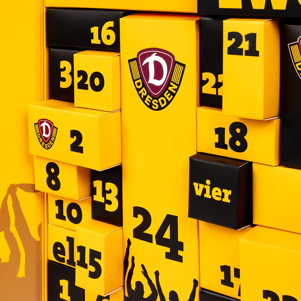 Mit dem offiziellen Adventskalender der SG Dynamo Dresden wird die Vorweihnachtszeit schwarz-gelb. Hinter jedem der 24 Türchen steckt ein Stück Dynamo – voller Leidenschaft, Stolz und Gemeinschaft. Ob im Bad, unterwegs oder zu Hause – hier steckt pure Fanliebe drin.