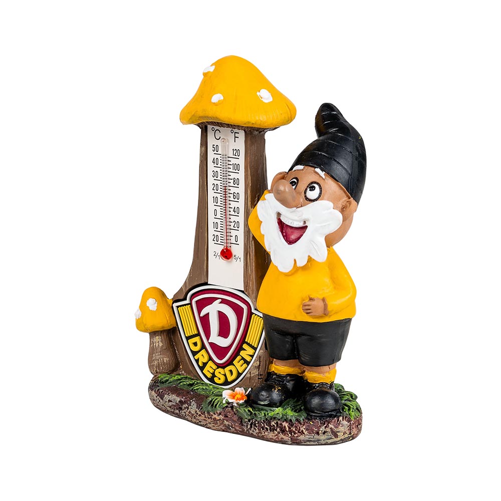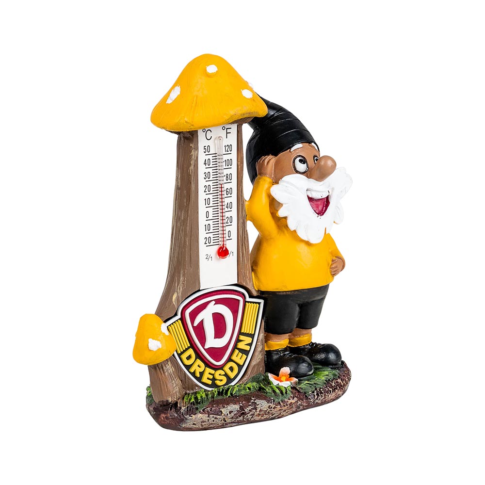 Klein, aber mit voller Dynamo-Power! Unser Gartenzwerg Thermometer bringt schwarz-gelbe Stimmung in deinen Garten, Balkon oder auf die Terrasse. Liebevoll gestaltet und wetterfest, zeigt er zuverlässig die Temperatur an – ohne Strom, einfach überall einsetzbar. Ein dynamischer Begleiter für alle, die Tradition, Leidenschaft und Gemeinschaft spüren wollen – egal bei welchem Wetter.