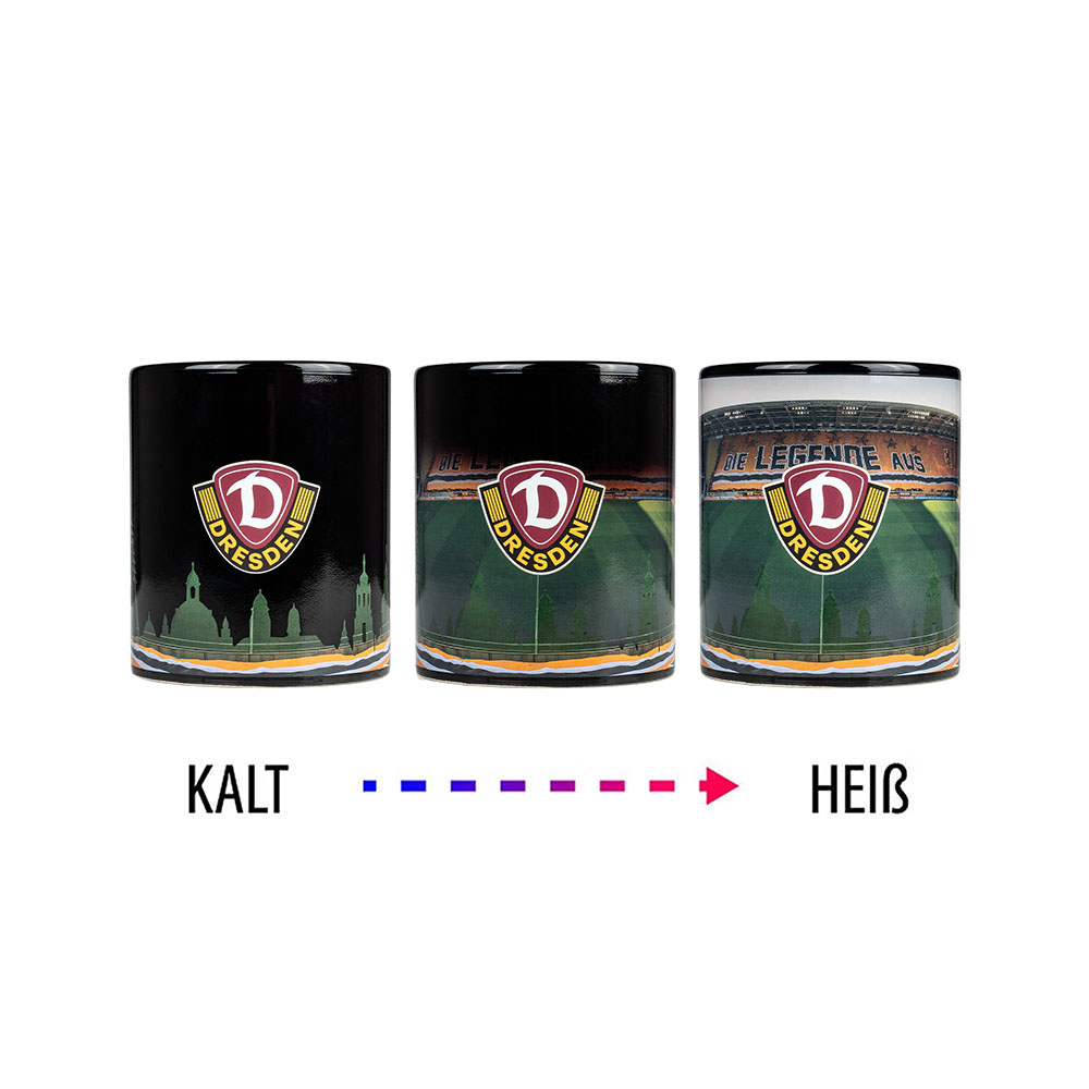 Start in den Tag, schwarz-gelb im Herzen: Die Farbwechseltasse bringt Dynamo Dresden direkt in dein Wohnzimmer. Mit jedem heißen Getränk verwandelt sich die schlichte Tasse in ein kleines Kunstwerk.
