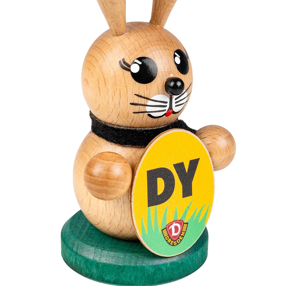 Die handgefertigte Osterhasen-Figur von Dynamo-Fan Jens Held aus Olbernhau bringt Tradition und Leidenschaft direkt in dein Wohnzimmer. Mit viel Liebe zum Detail geschnitzt, trägt der kleine Hase das Wappen unserer SGD und sorgt dafür, dass Schwarz und Gelb auch an Ostern präsent sind.
