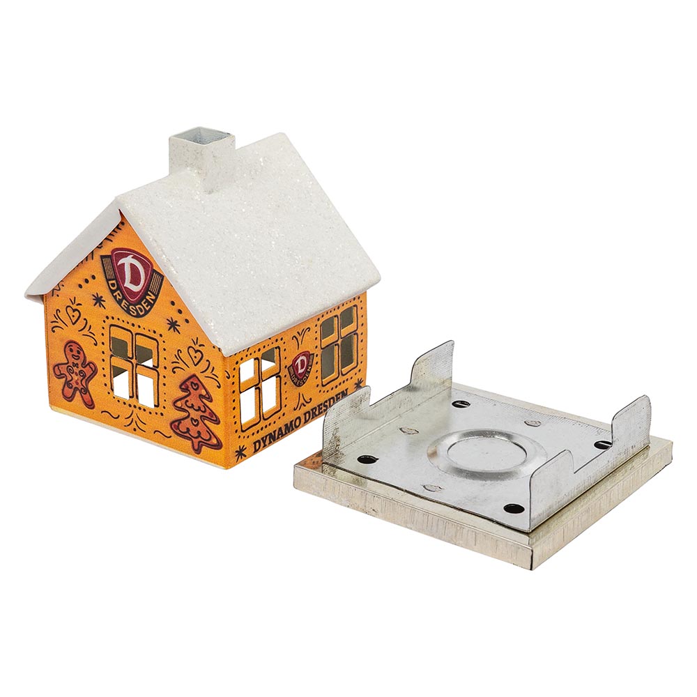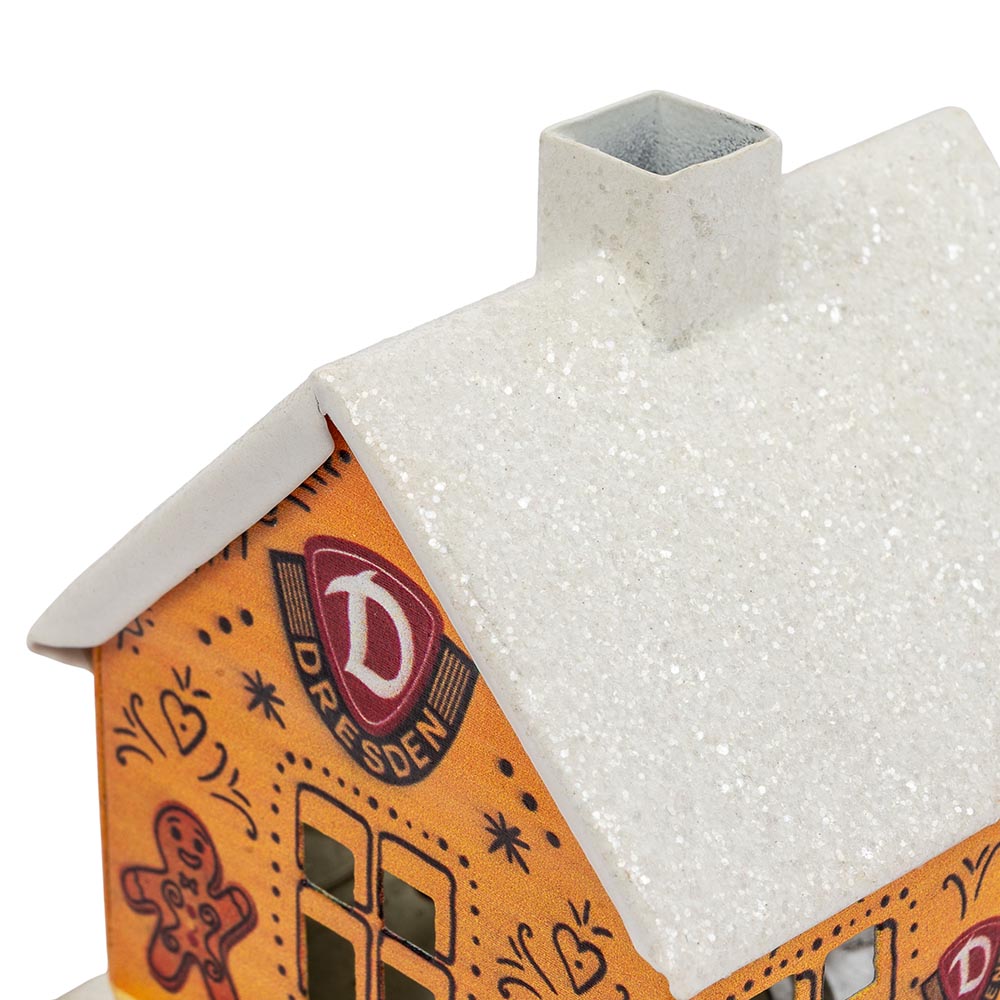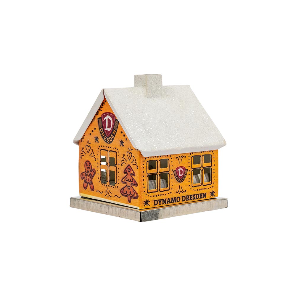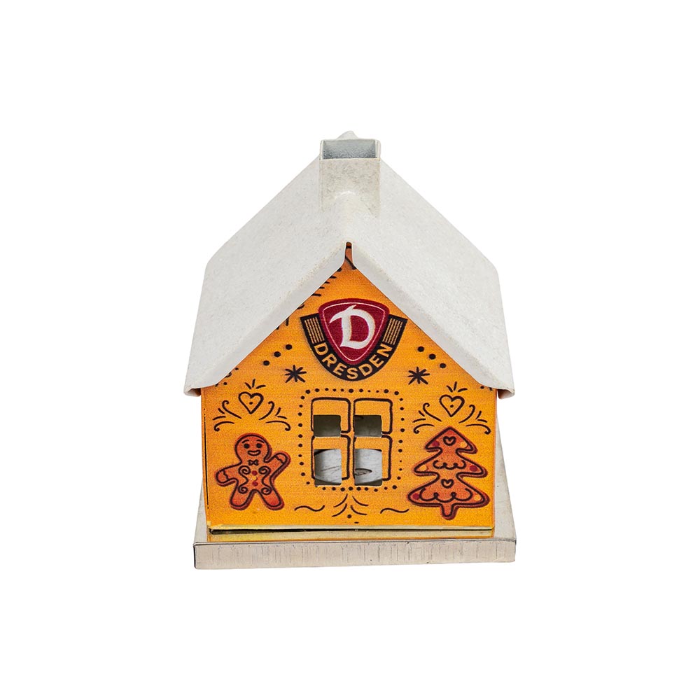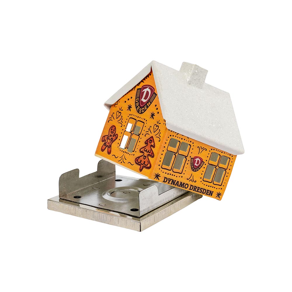 Klassisches RĂ€ucherhaus aus Metall in dynamischem Design mit Wappen der SGD und weihnachtlichen Elementen.