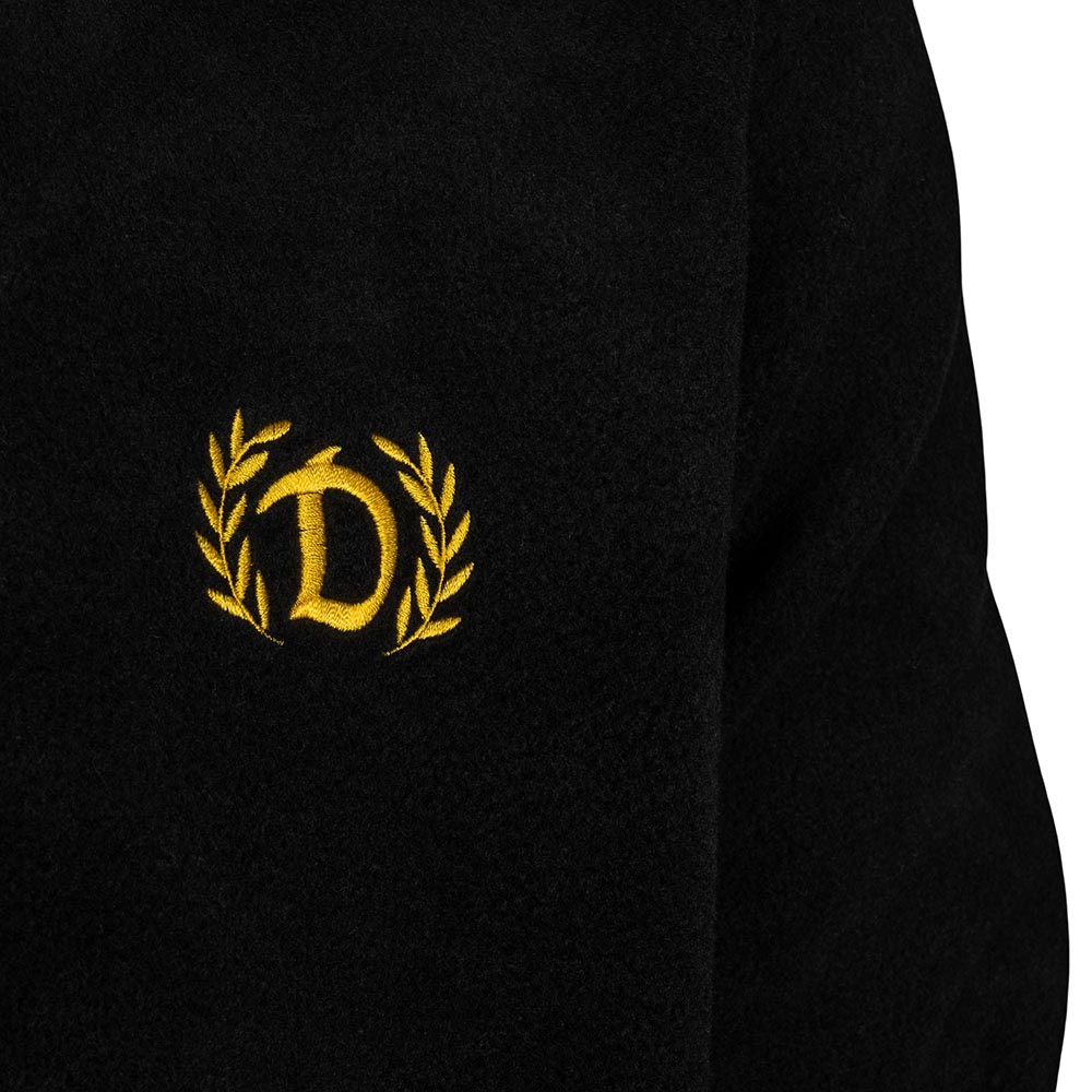 Die Fleecejacke hält dich auf jedem Weg zum Rudolf-Harbig-Stadion warm. Schwarz, gelb, mit Ehrenkranz und dem gestickten Dynamo D auf der Brust – perfekt für alle, die ihre Verbundenheit zur SGD zeigen. Ob Spieltag, Stadt oder Zuhause im Wohnzimmer – mit dieser Fleecejacke bist du überall Dynamo.