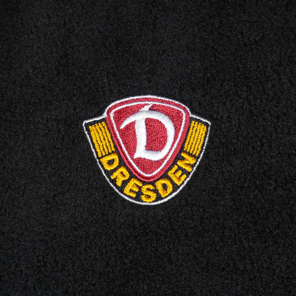 Die Fleecejacke hält dich auf jedem Weg zum Rudolf-Harbig-Stadion warm. Schwarz, mit dem gestickten Dynamo Wappen auf der Brust – perfekt für alle, die ihre Verbundenheit zur SGD zeigen.