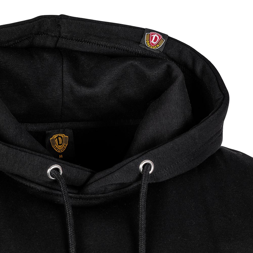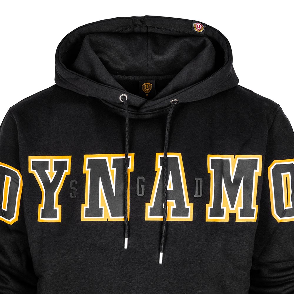 Modischer Hoodie mit großem DYNAMO Schriftzug auf der Vorderseite.