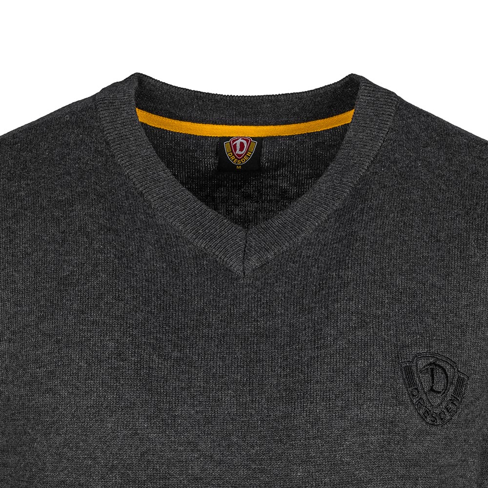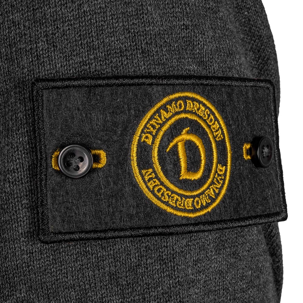 Der Herren-Strickpullover „WAPPEN“ in anthrazit bringt Dynamo Dresden direkt in deinen Alltag. Robust, bequem und voller Leidenschaft – genau wie unsere Sportgemeinschaft seit 1953. Mit dem gestickten Dynamo-Wappen auf der Brust trägst du deine Verbundenheit zur SGD sichtbar nach außen.