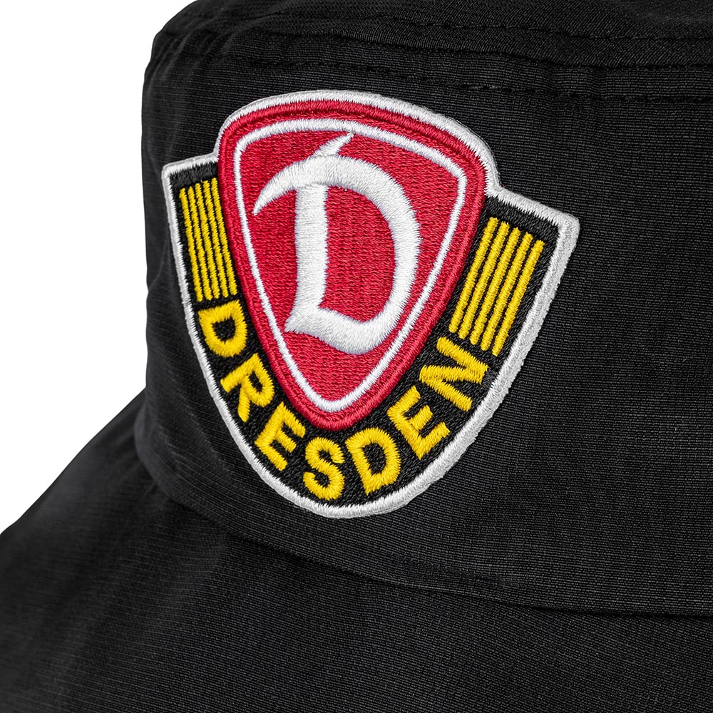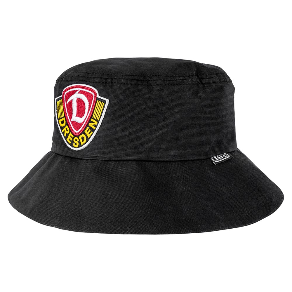 Für alle, die Dynamo im Herzen tragen – auch wenn die Sonne knallt. Modischer Fischerhut von Ausrüster JAKO in tiefem Schwarz. Die Krempe schützt, das Material sitzt – und zusammengefaltet passt das Teil in jede Tasche.