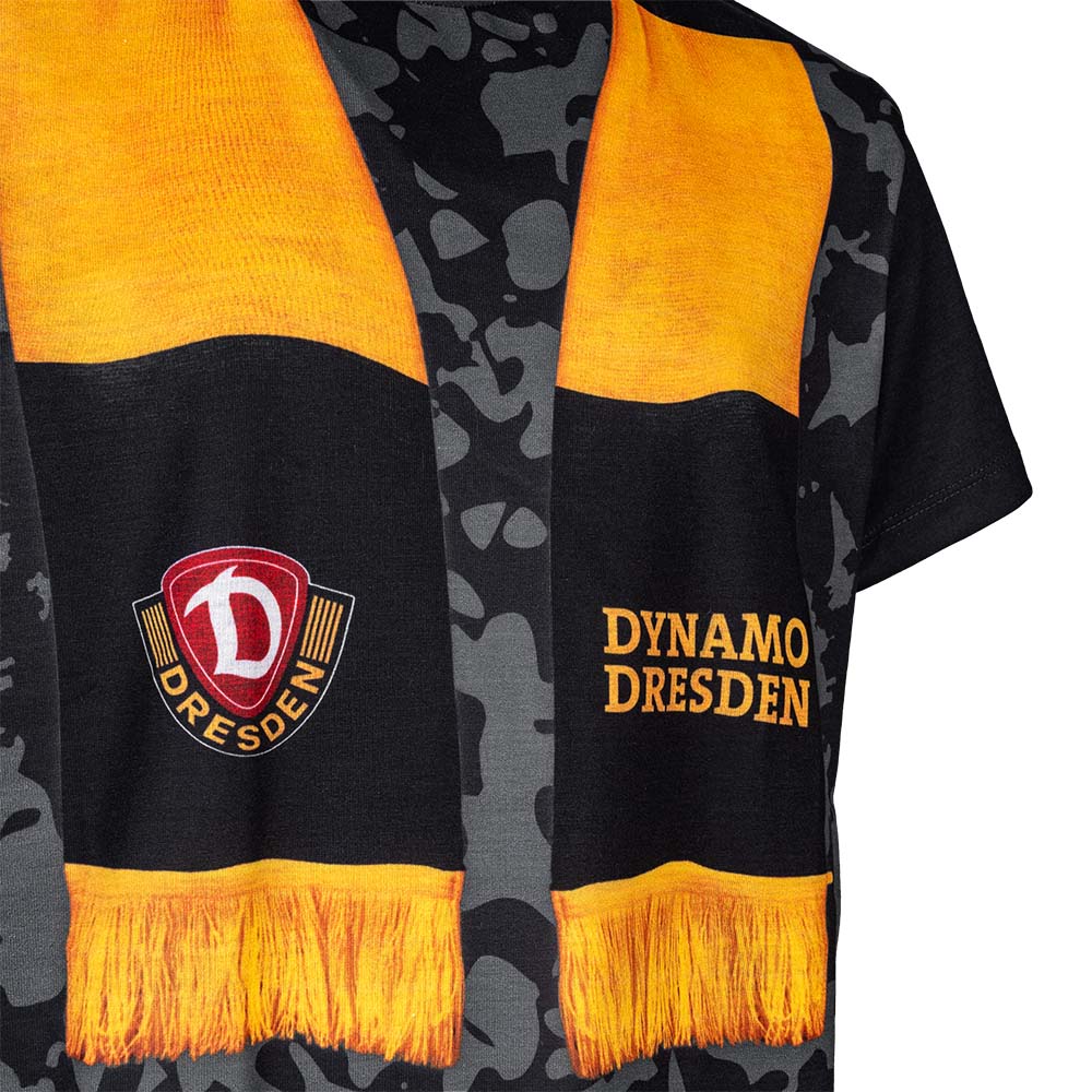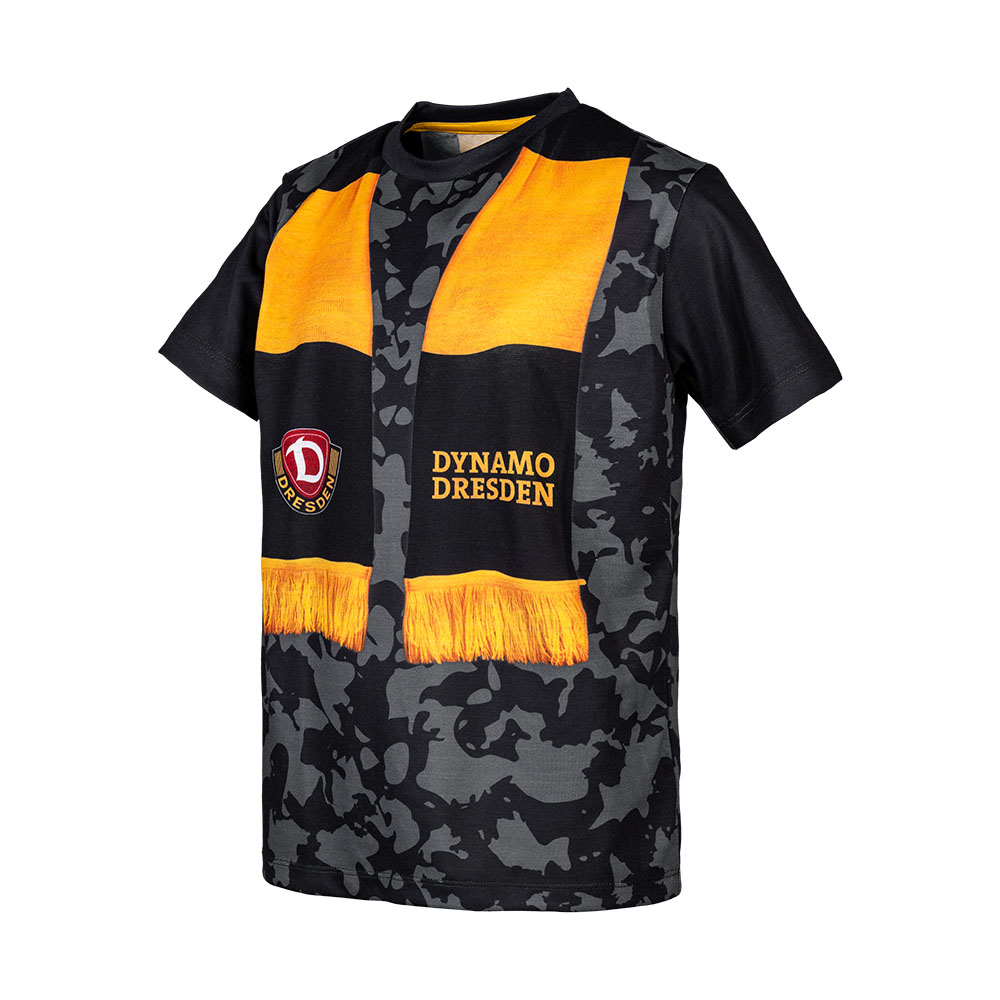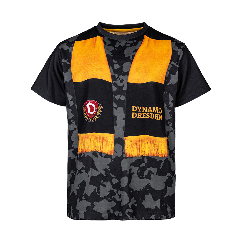 Klassisches Kinder-Shirt in dynamischem Camo-Design mit Fanschal-Motiv.