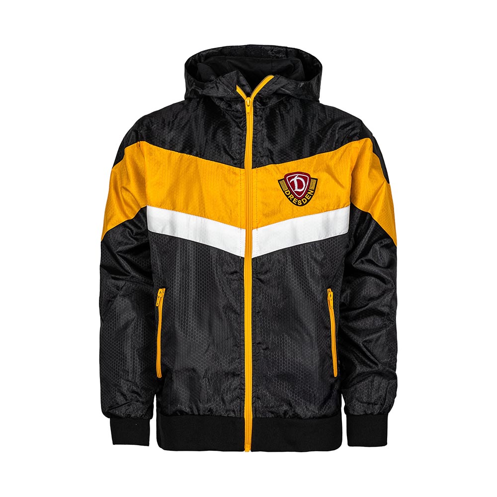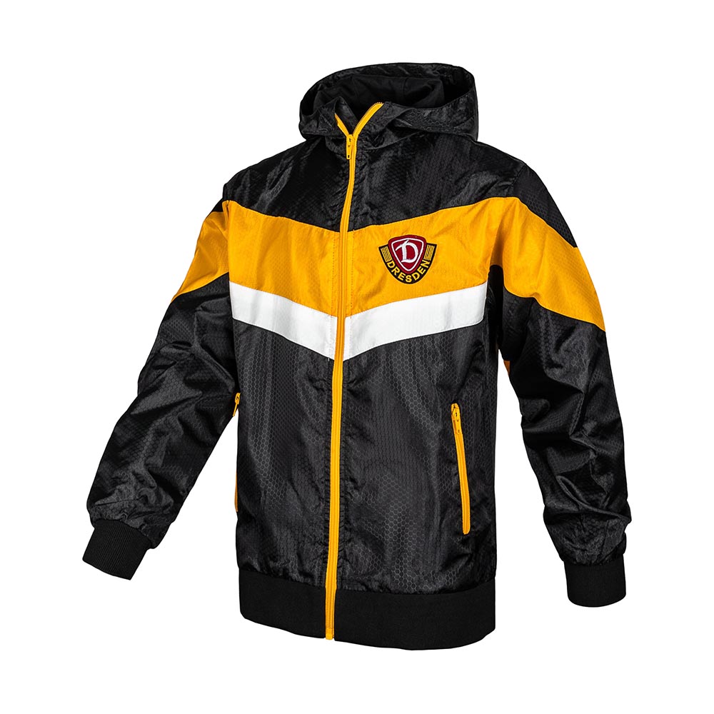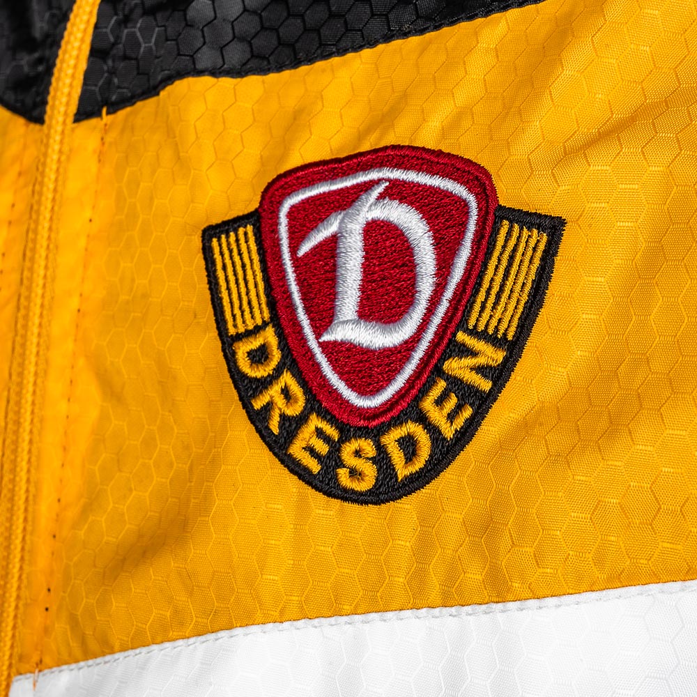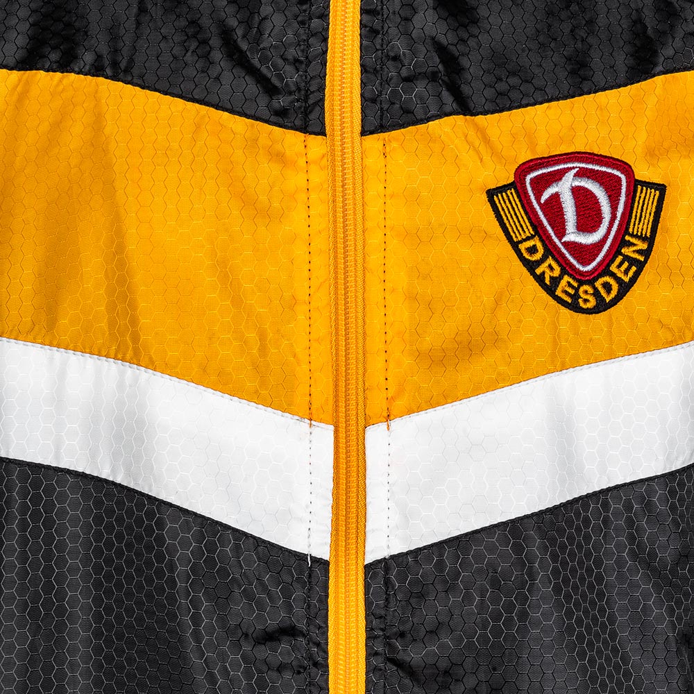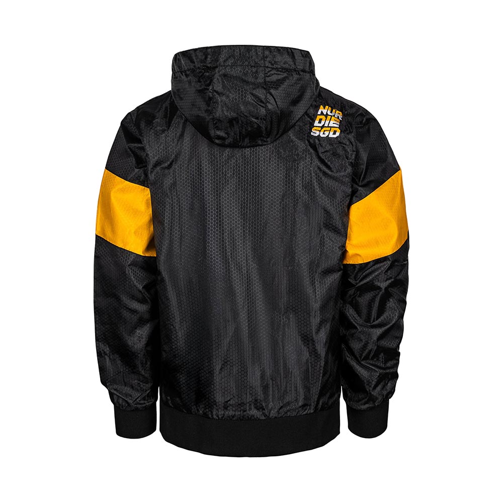 Die Windjacke in klassischem Schwarz-Gelb bringt Dynamo Dresden schon den Kleinsten nahe. Mit kleinem "NUR DIE SGD" Schriftzug auf der Schulter und dem gestickten Wappen auf der Brust zeigt sie Stolz, Tradition und Zusammenhalt – perfekt für jeden Spieltag und jeden Ausflug.