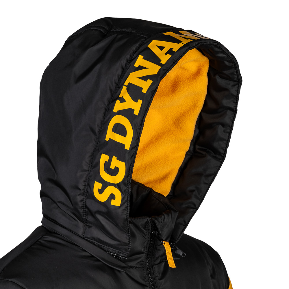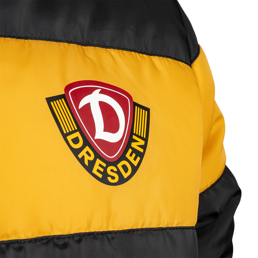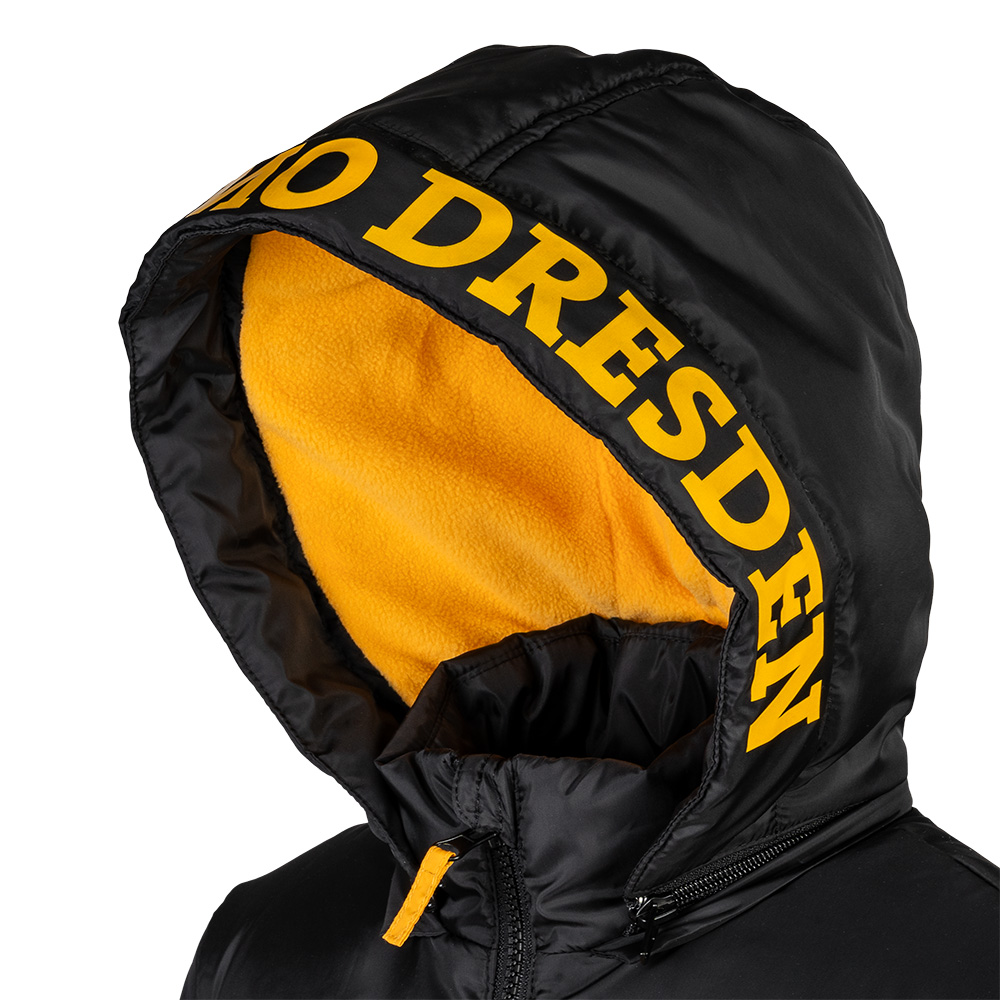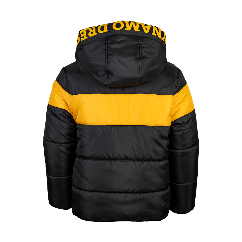 Mit der Kinder Winterjacke bleibt der Nachwuchs auch in der kalten Jahreszeit Dynamo-treu. Schwarz-Gelb durch und durch – mit großem "SG DYNAMO DRESDEN" Schriftzug auf der Kapuze und dem Wappen unserer Sportgemeinschaft auf der Brust. Die wattierte Jacke schützt vor Wind und Kälte, ist bequem und robust – perfekt für Schule, Stadion oder Alltag. So zeigt auch der Dynamo-Nachwuchs: Wir sind Dresden. Wir sind Dynamo.