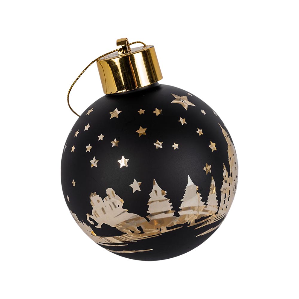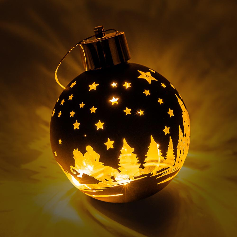 • Kugel für den Tannenbaum in schwarz-gelb mit integrierter LED-Beleuchtung