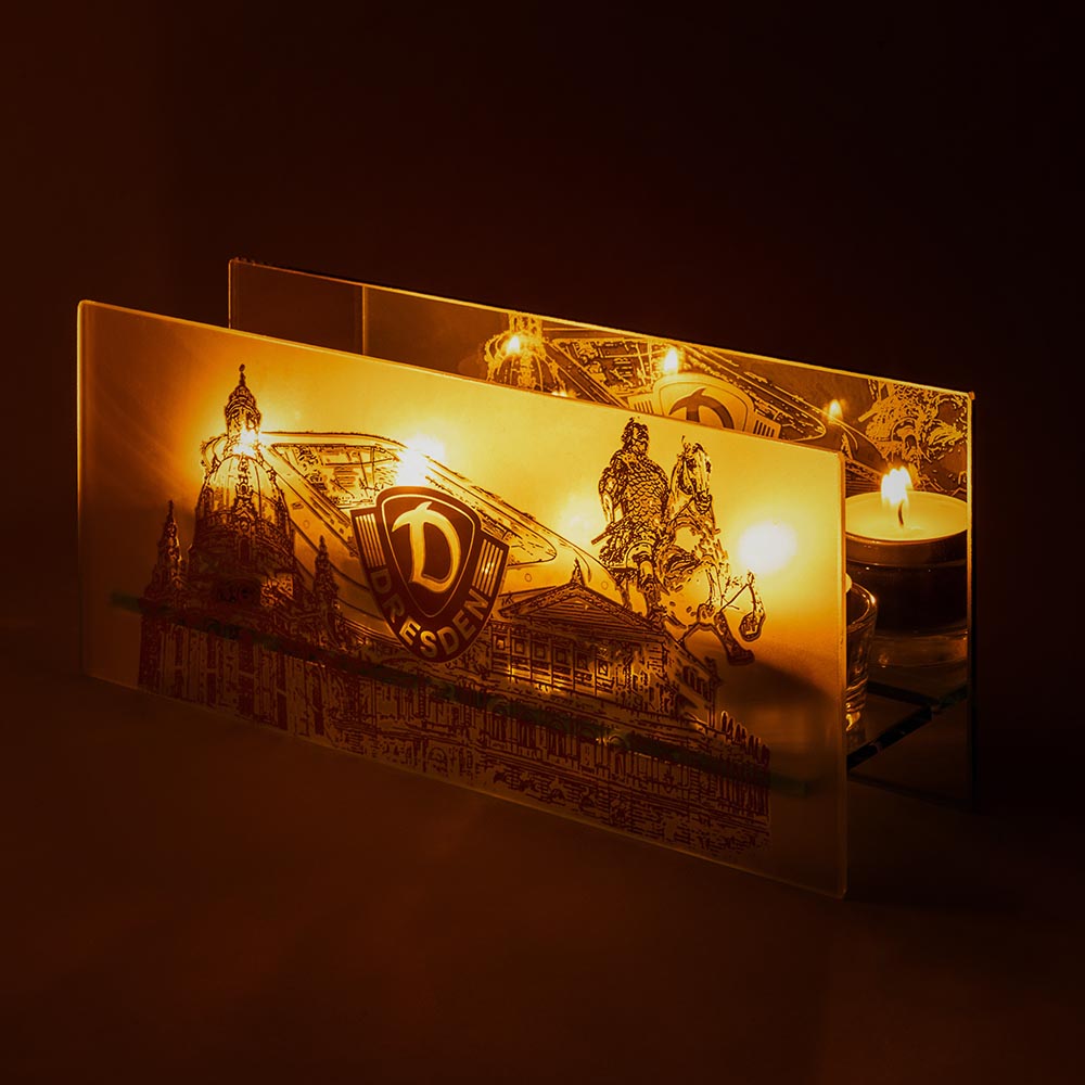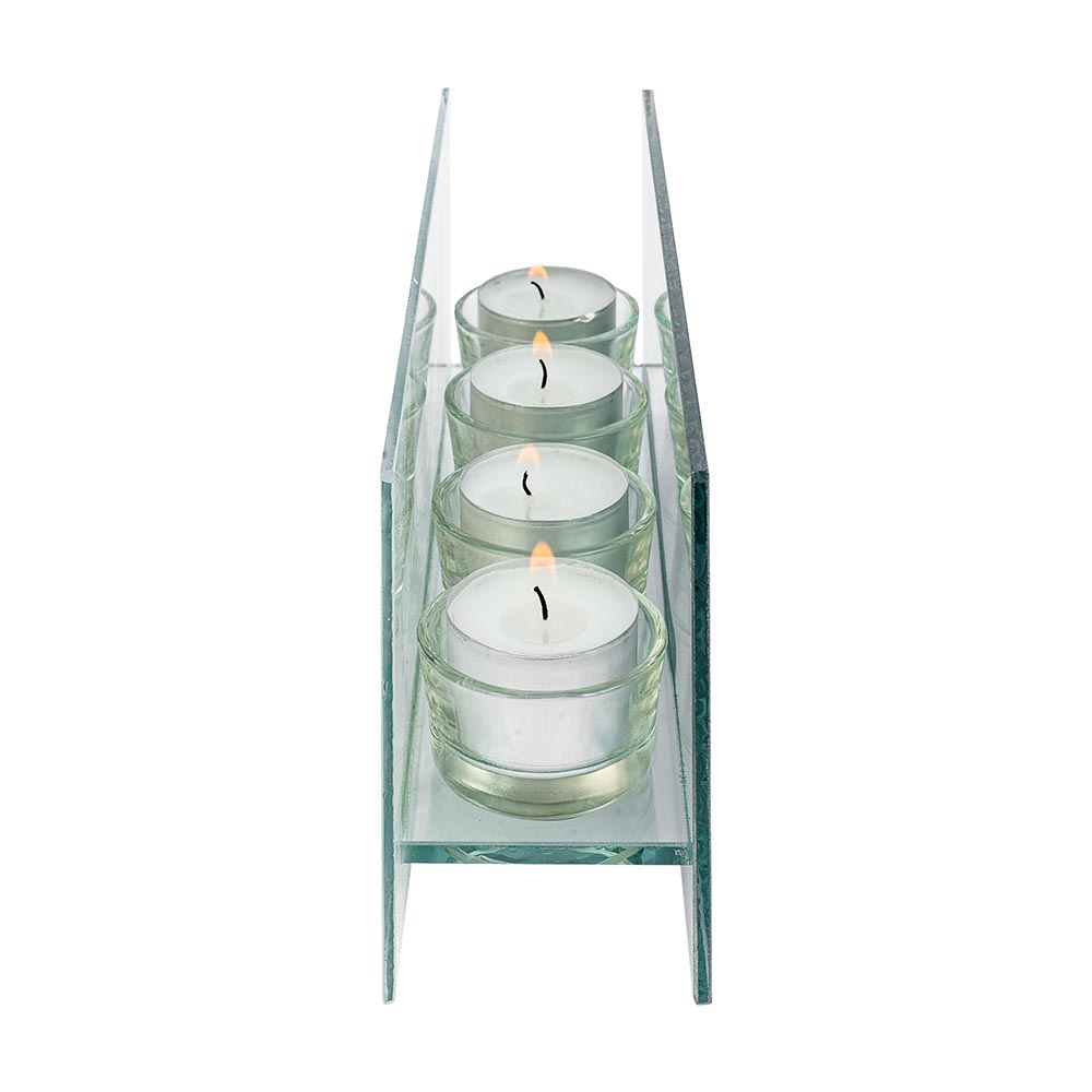 Das speziell verspiegelte Glas reflektiert die Flammen der Teelichter und erweckt den Eindruck eines ganzen Lichtermeeres.