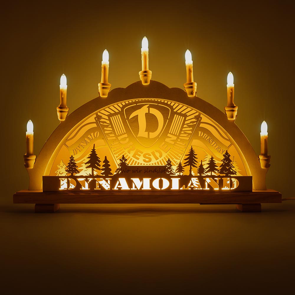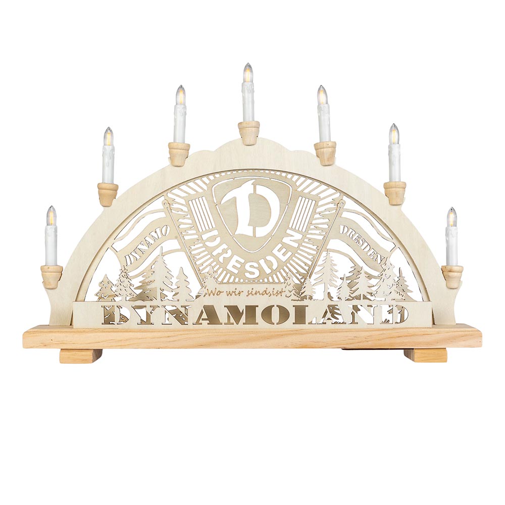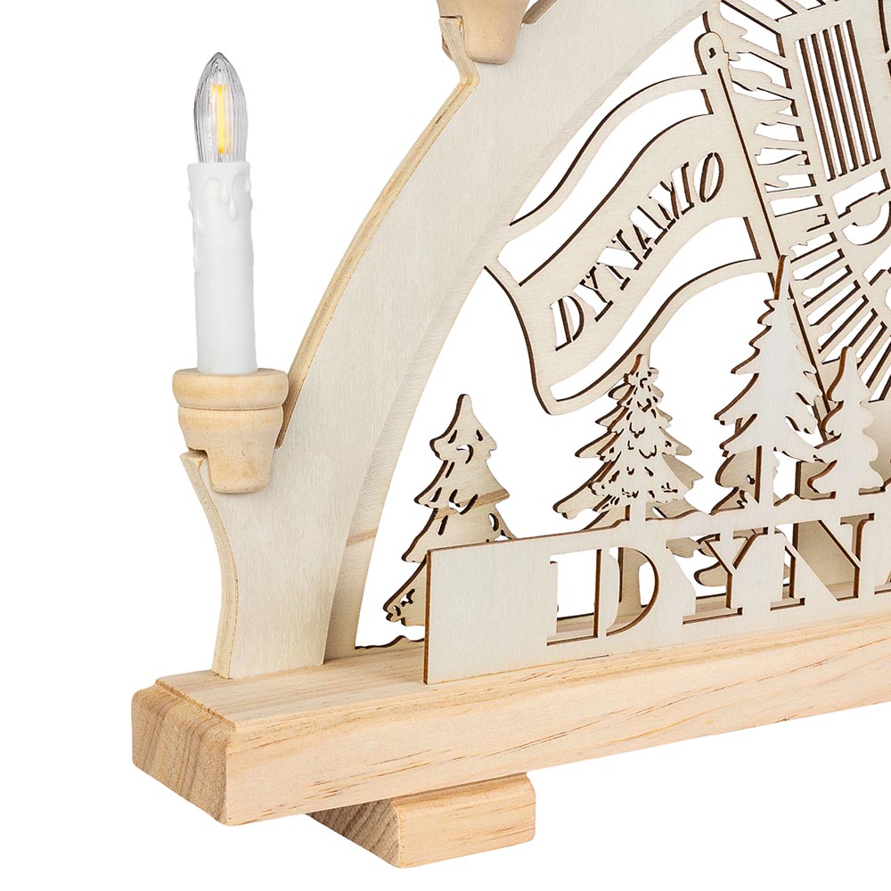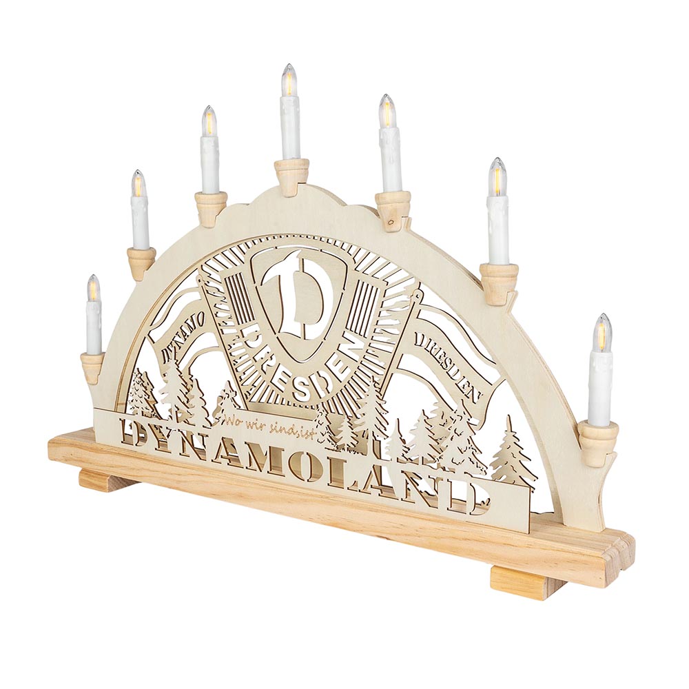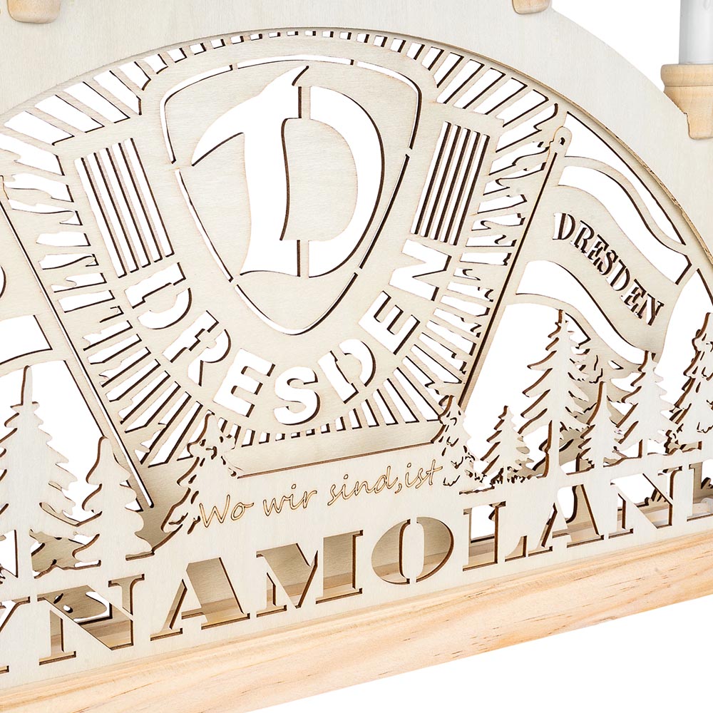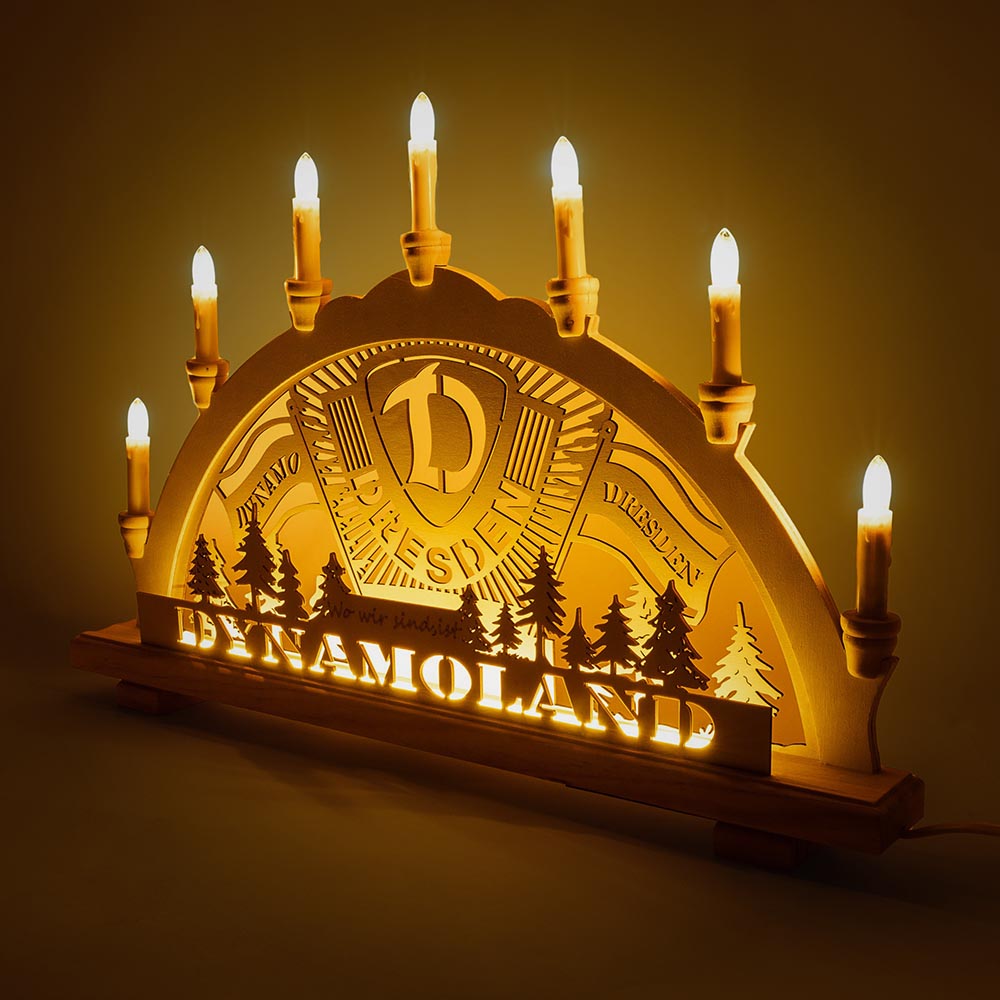 Dieser Schwibbogen wird mit 7 Spitzkerzen beleuchtet und ist für jeden etwas Besonderes, der eine Verbindung zu unserem Verein besitzt.